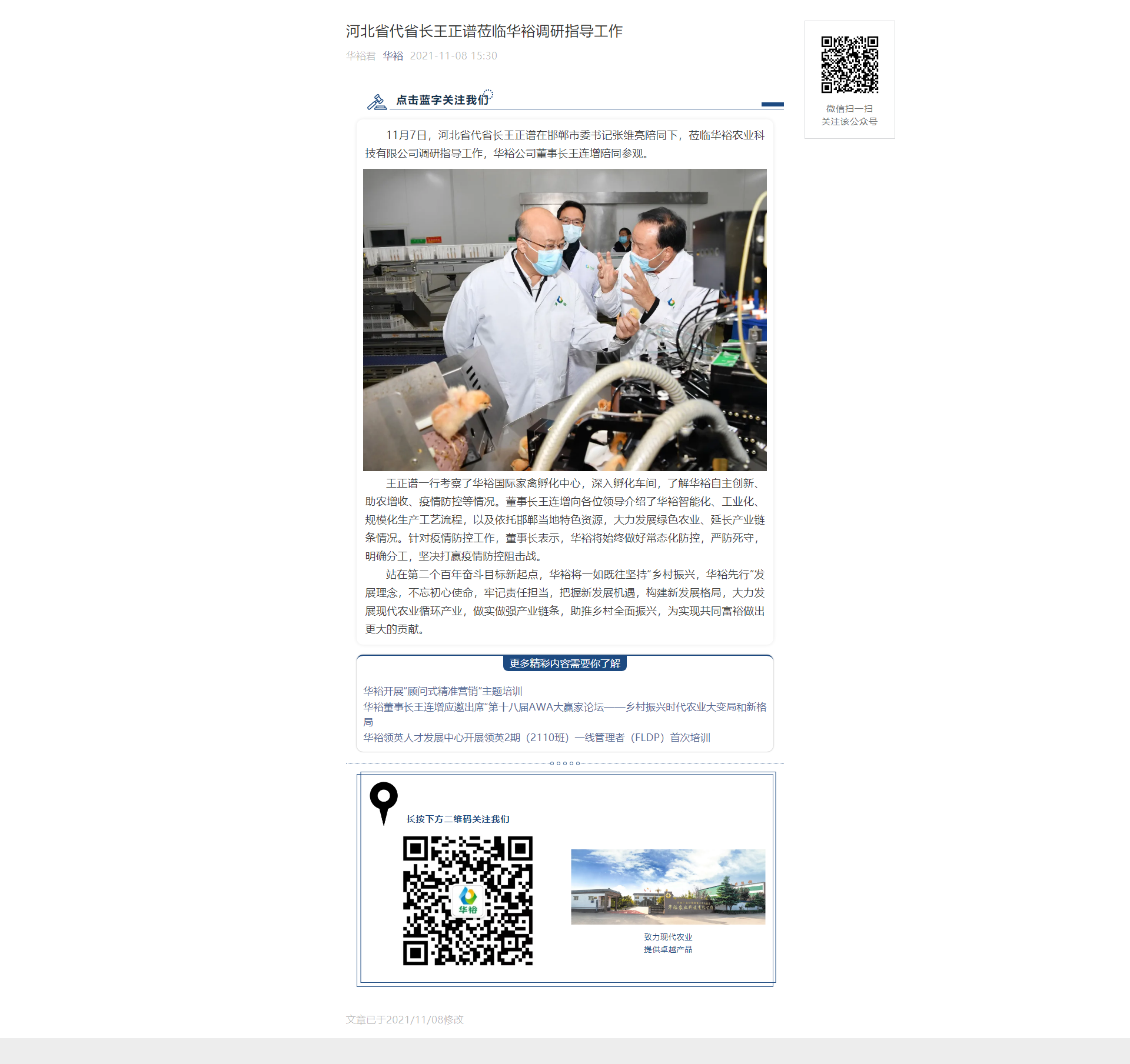 河北省代省長王正譜蒞臨華裕調(diào)研指導(dǎo)工作