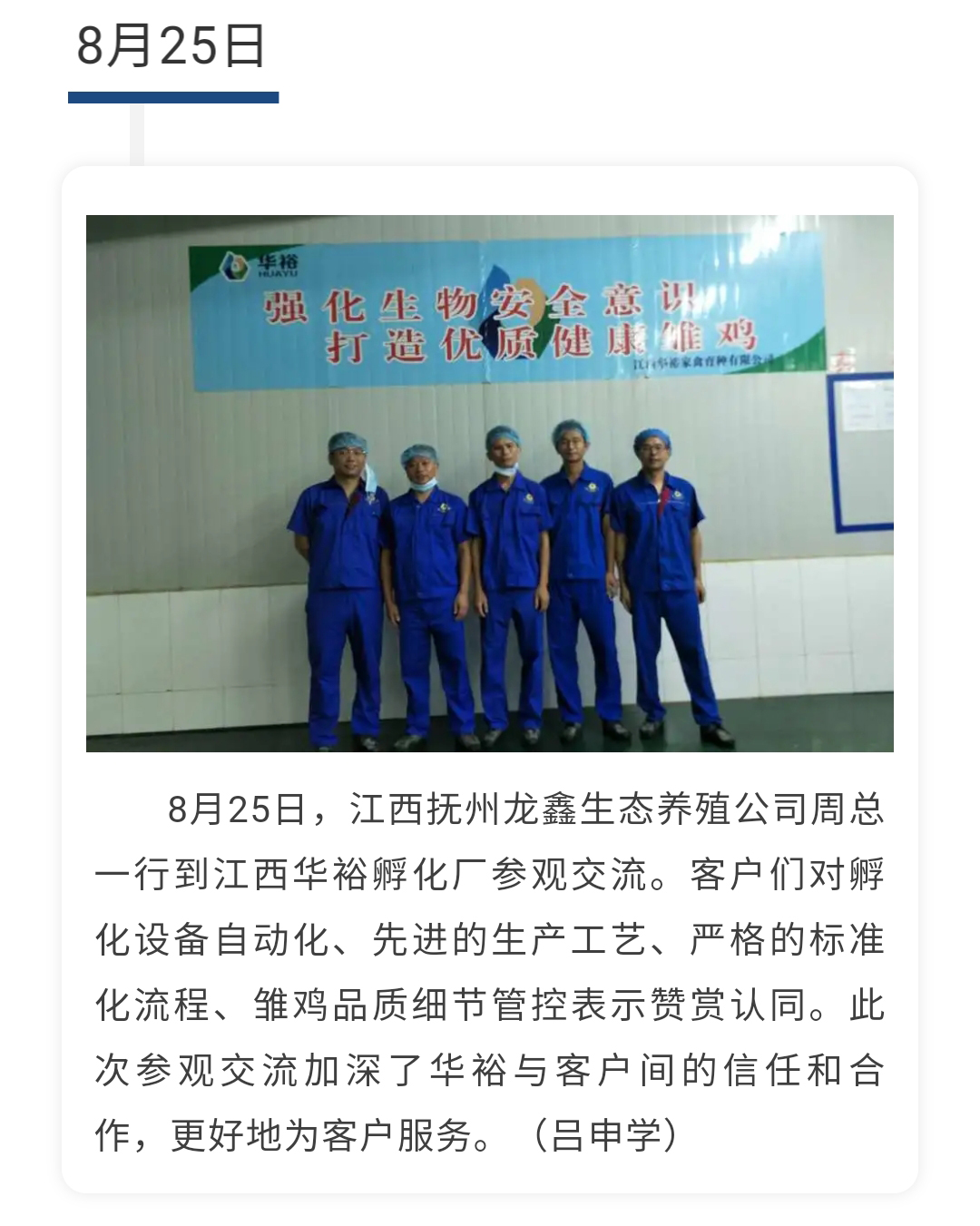 【一周快報】江西撫州龍鑫生態養殖公司人員參觀江西華裕