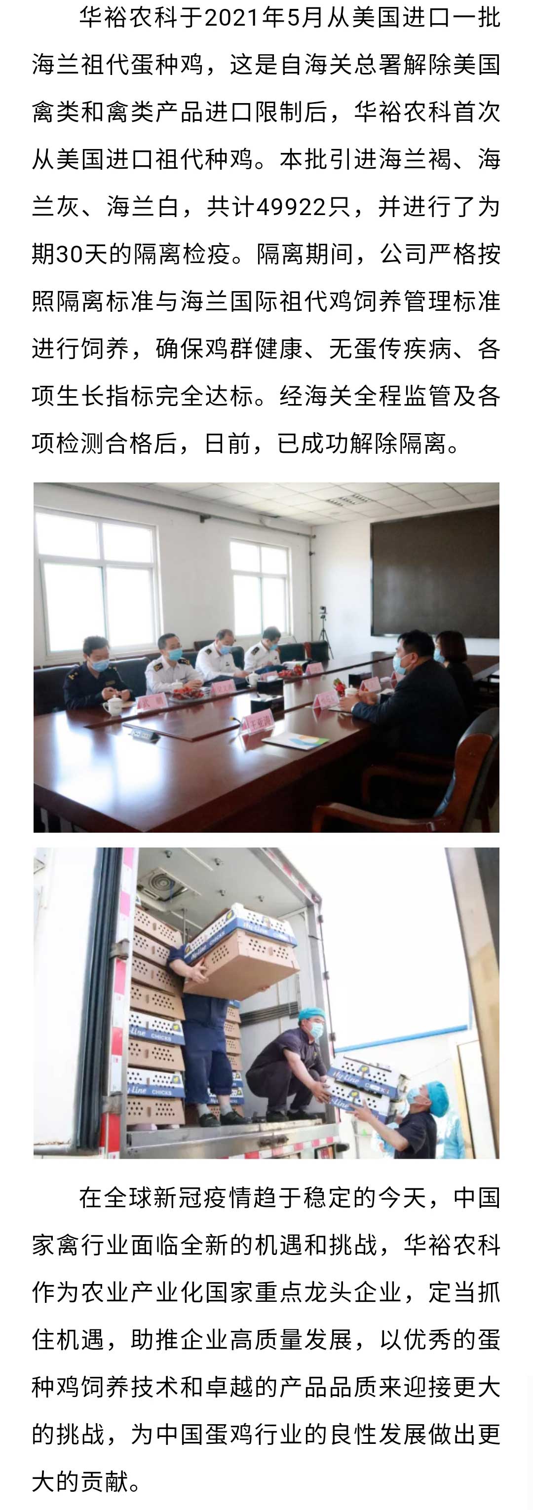 【祖代雞引進】華裕農科成功從美國引進海蘭祖代蛋種雞